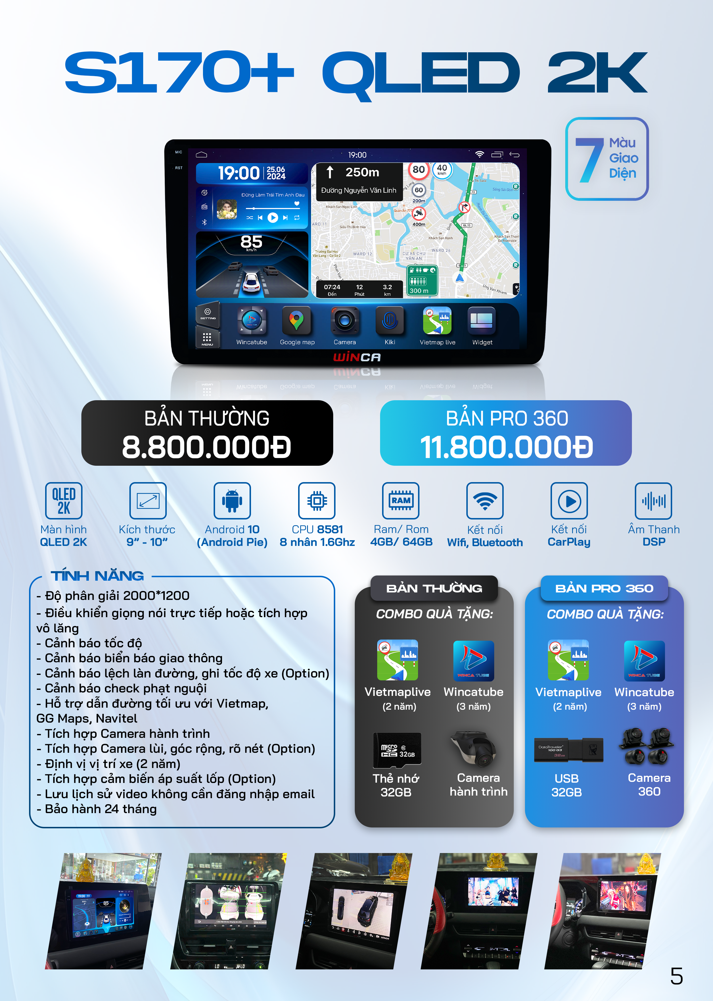 Trên màn hình Android đã tích hợp sẵn phần mềm bản quyền Vietmap Live, cảnh báo tốc độ kịp thời, cảnh báo biển báo giao thông, cảnh báo camera phạt nguội, hỗ trợ tài xế lái xe an toàn. Ngoài ra, hỗ trợ nâng cấp cập nhật phần mềm trọn đời.