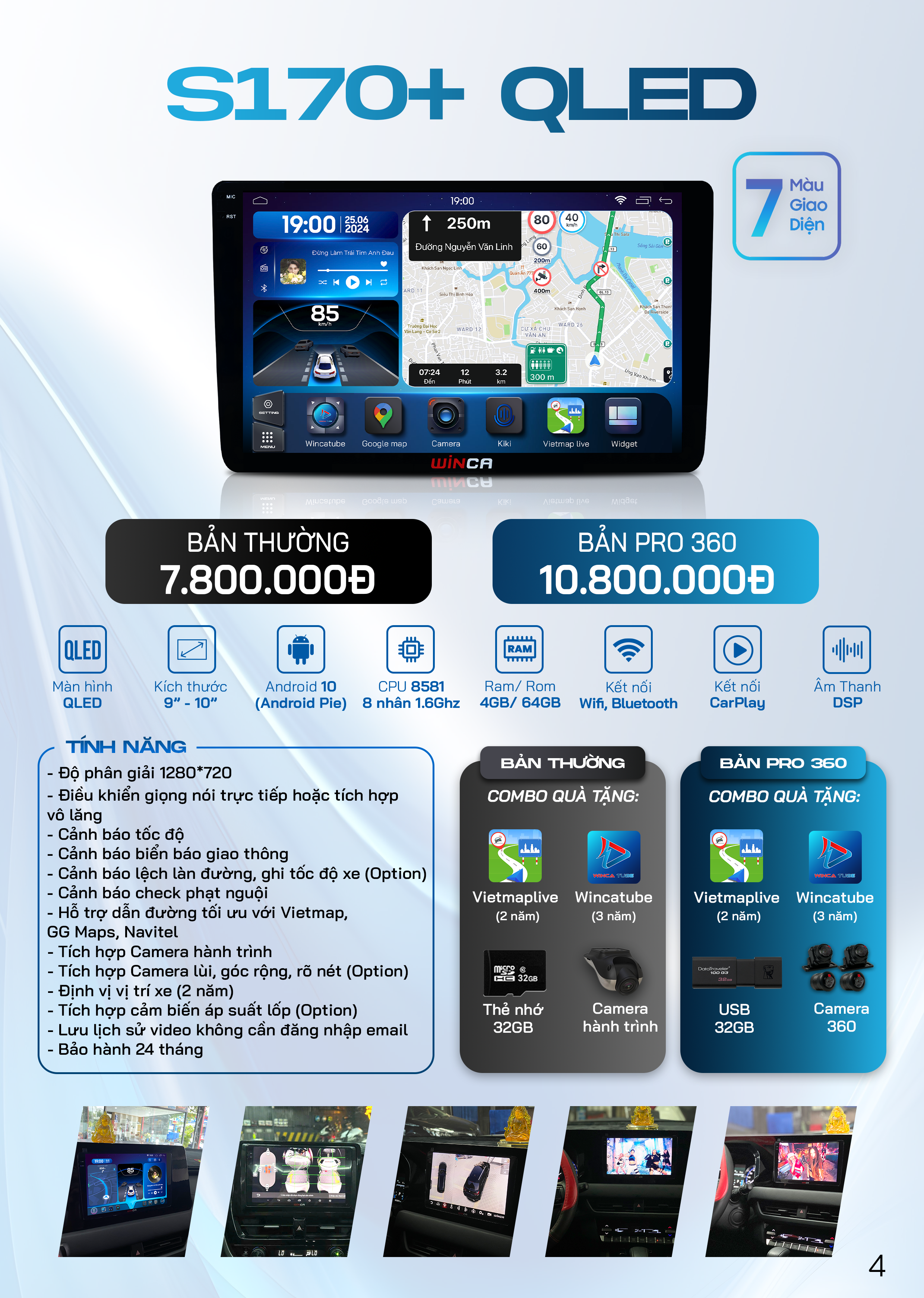 Trên màn hình Android đã tích hợp sẵn phần mềm bản quyền Vietmap Live, cảnh báo tốc độ kịp thời, cảnh báo biển báo giao thông, cảnh báo camera phạt nguội, hỗ trợ tài xế lái xe an toàn. Ngoài ra, hỗ trợ nâng cấp cập nhật phần mềm trọn đời.
