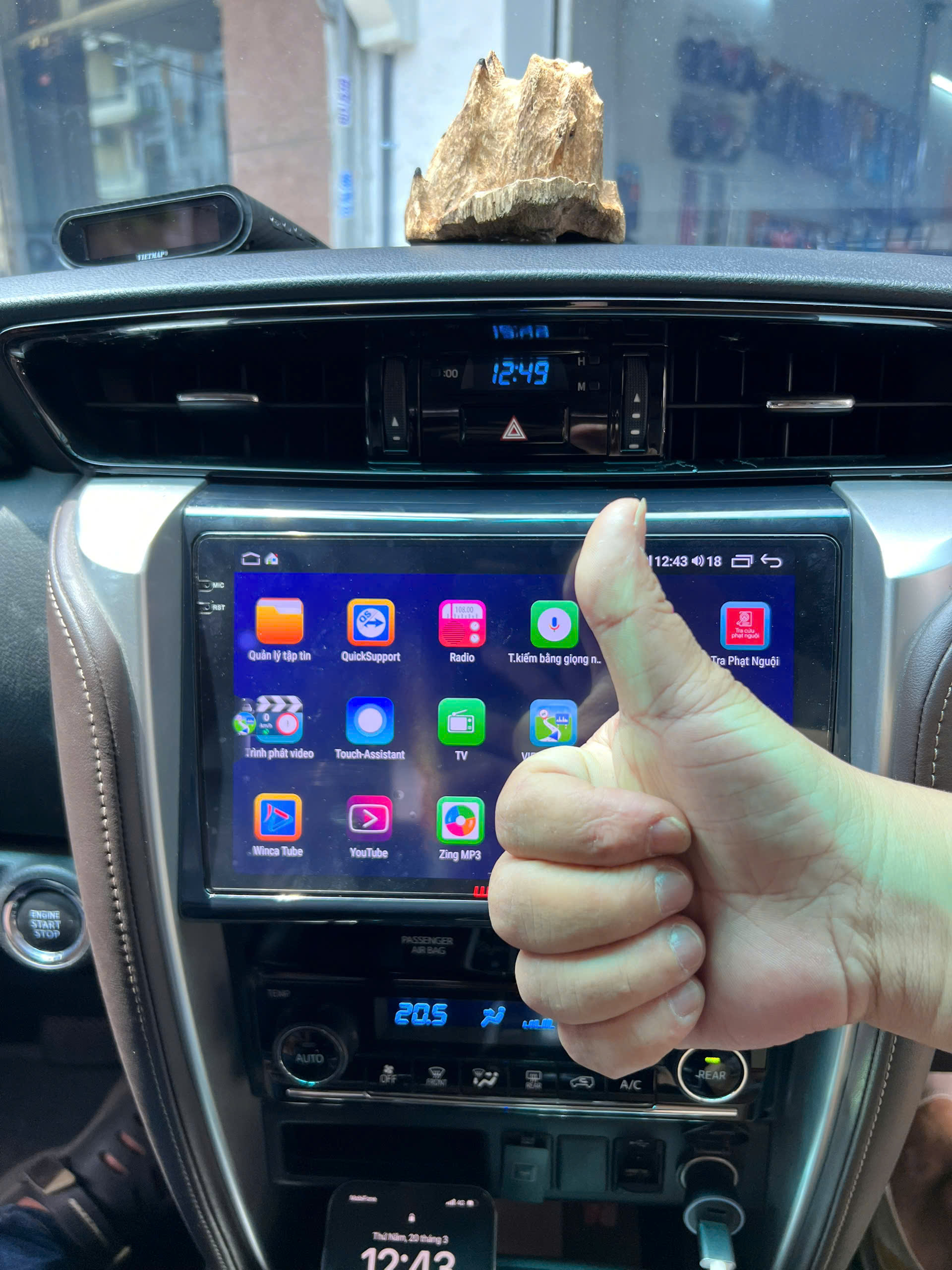 Trên màn hình Android đã tích hợp sẵn phần mềm bản quyền Vietmap Live cho phép tìm đường nhanh chóng, cảnh báo tốc độ kịp thời, cảnh báo biển báo giao thông, cảnh báo camera phạt nguội, hỗ trợ tài xế lái xe an toàn. Ngoài ra, hỗ trợ nâng cấp cập nhật phần mềm liên tục 2 tuần/lần.