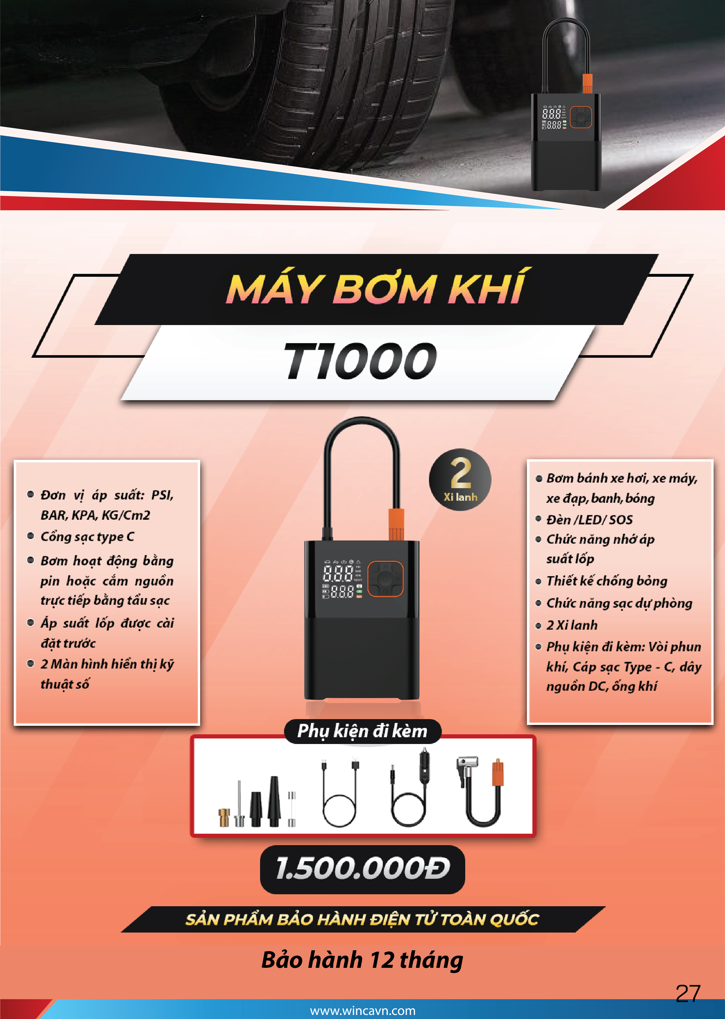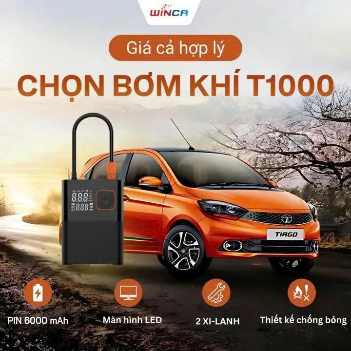 Máy bơm khí T1000 là sản phẩm của thương hiệu Winca Việt Nam, được thiết kế đặc biệt để bơm hơi cho các phương tiện như ô tô, xe máy, xe đạp, v.v. Với kích thước nhỏ gọn, dễ dàng mang theo và sử dụng, sản phẩm này tích hợp nhiều tính năng thông minh, trở thành một dụng cụ bơm lốp ô tô tiện lợi, không thể thiếu trong mỗi chuyến đi của bạn.