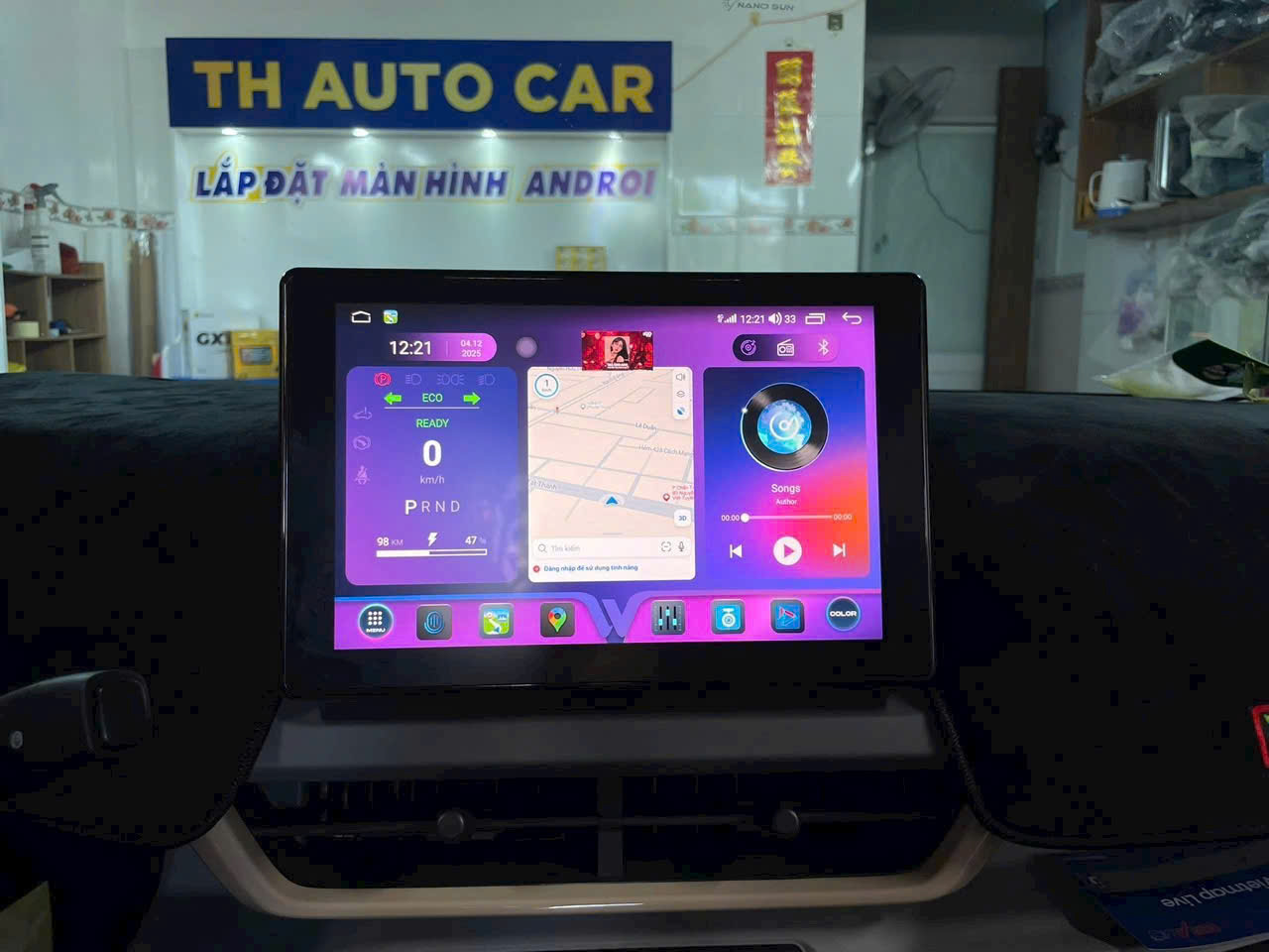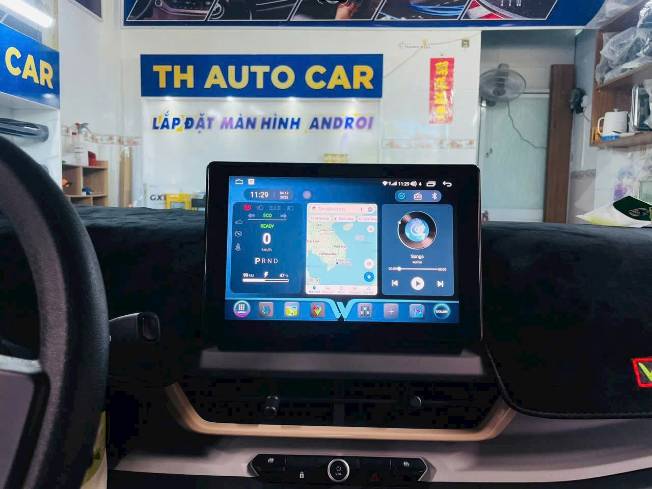 Bộ chuyển đổi SID S150+ VF3 khéo léo giữ nguyên thiết kế màn hình nguyên bản của xe, bao gồm cả tính năng tăng chỉnh âm lượng truyền thống và bố cục widget trên giao diện chính. Nhờ đó, màn hình vẫn hiển thị đầy đủ các thông tin quan trọng như tình trạng xe, bản đồ dẫn đường và các tiện ích khác.