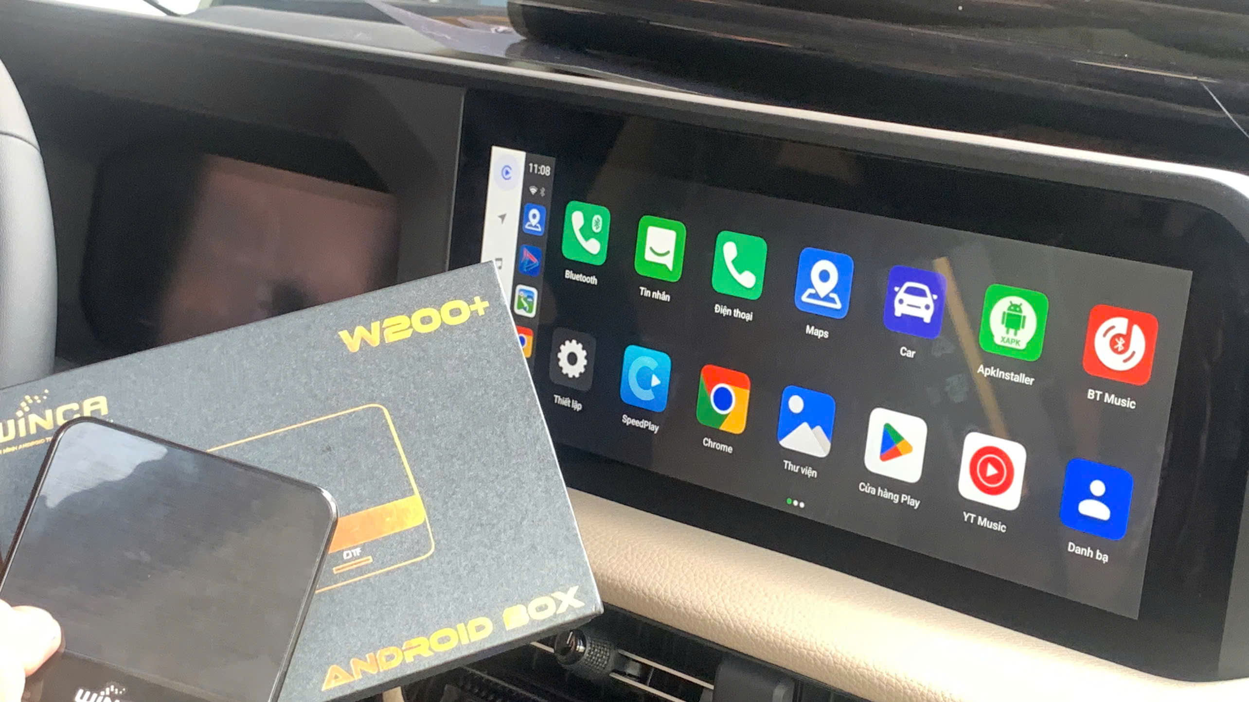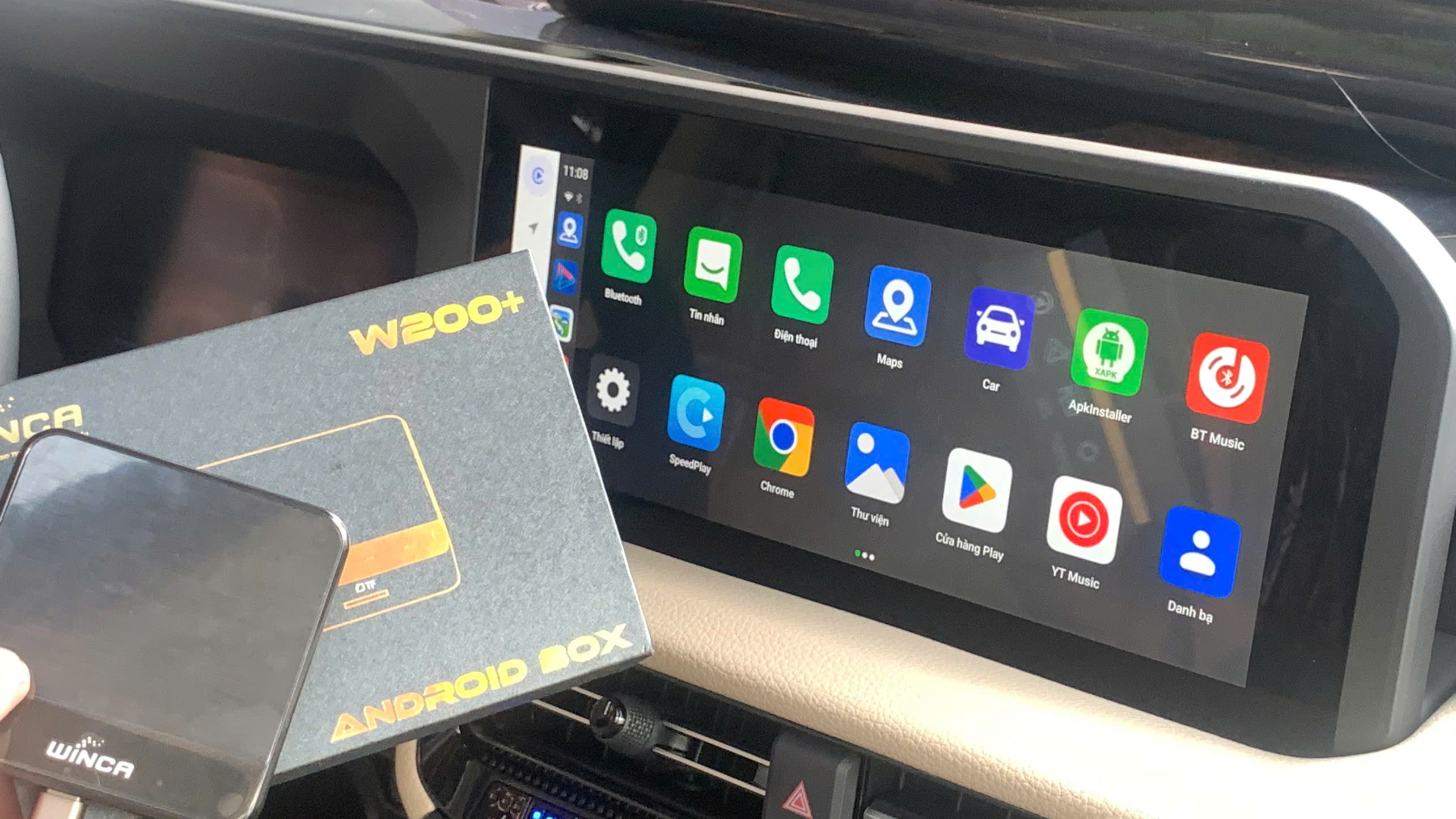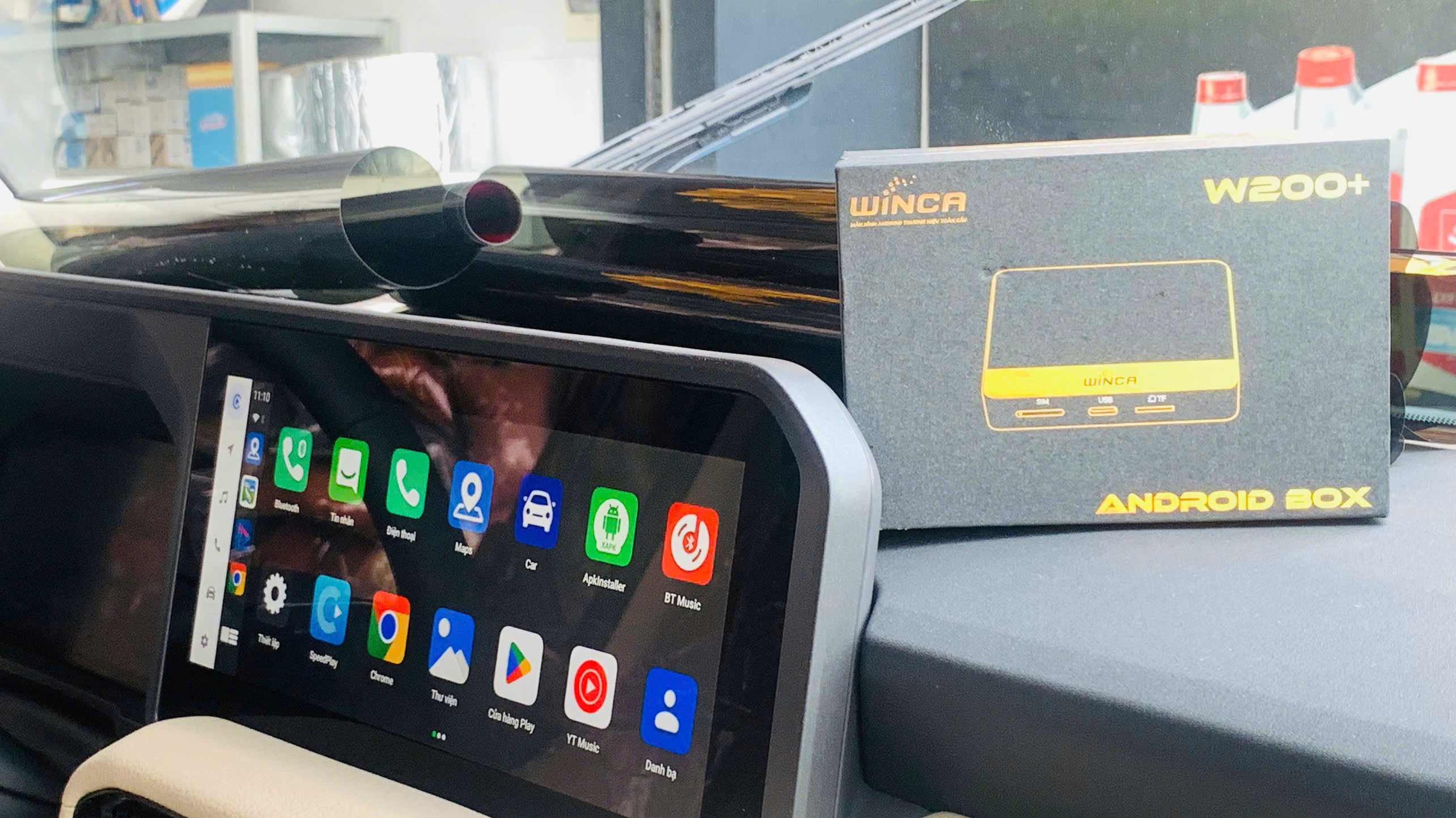 - Winca Android Box W200+ Pro Plus là thiết bị ngoại vi được kết nối với màn hình zin thông qua cáp USB